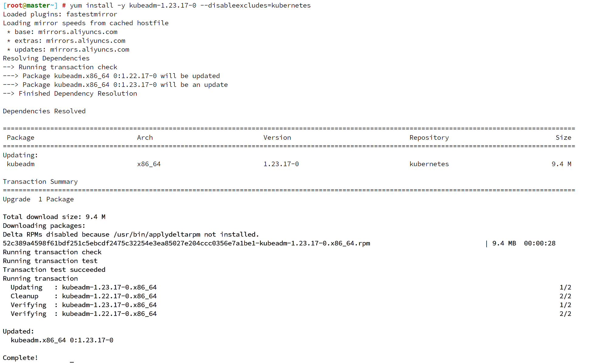yum install -y kubeadm-1.23.17-0 --disableexcludes=kubernetes