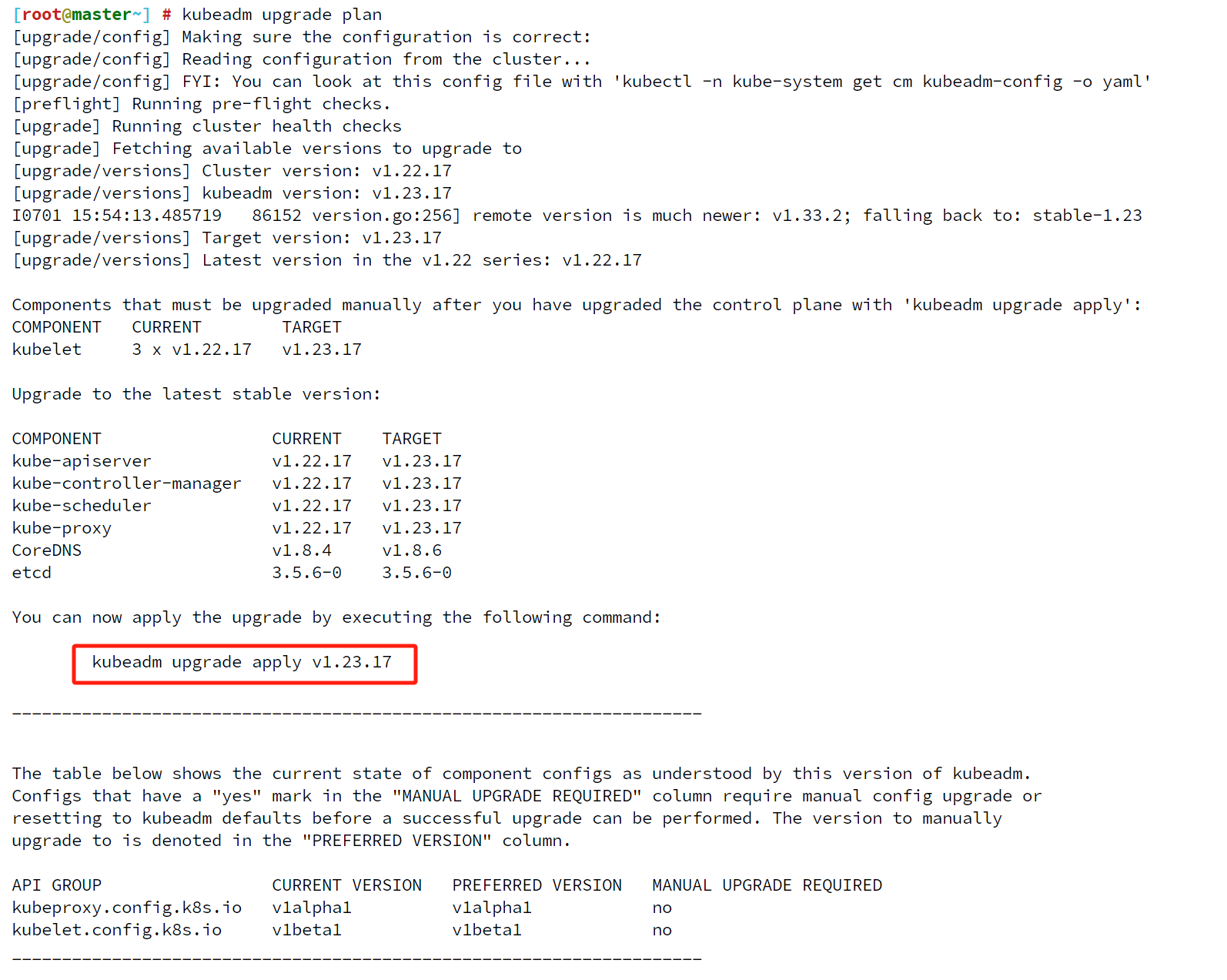 kubeadm upgrade apply v1.23.17